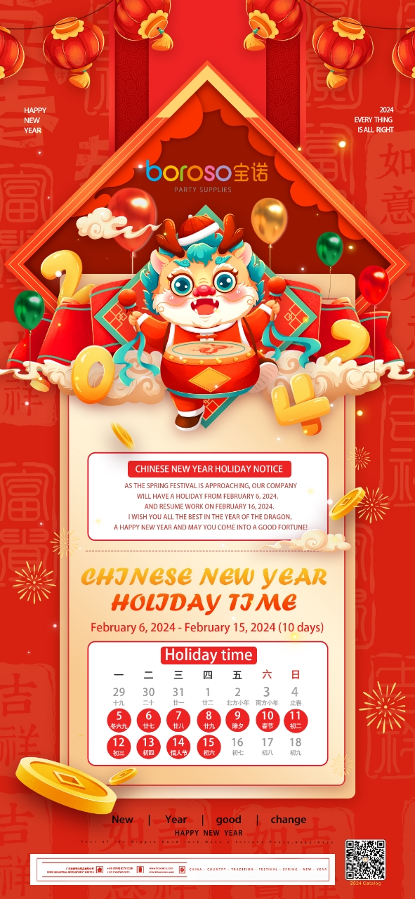 AS THE SPRING FESTIVALIS APPROACHING. OUR COMPANY WILL HAVE A HOLIDAY FROM FEBRUARY 6, 2024 AND RESUME WORK ON FEBRUARY 16, 2024.