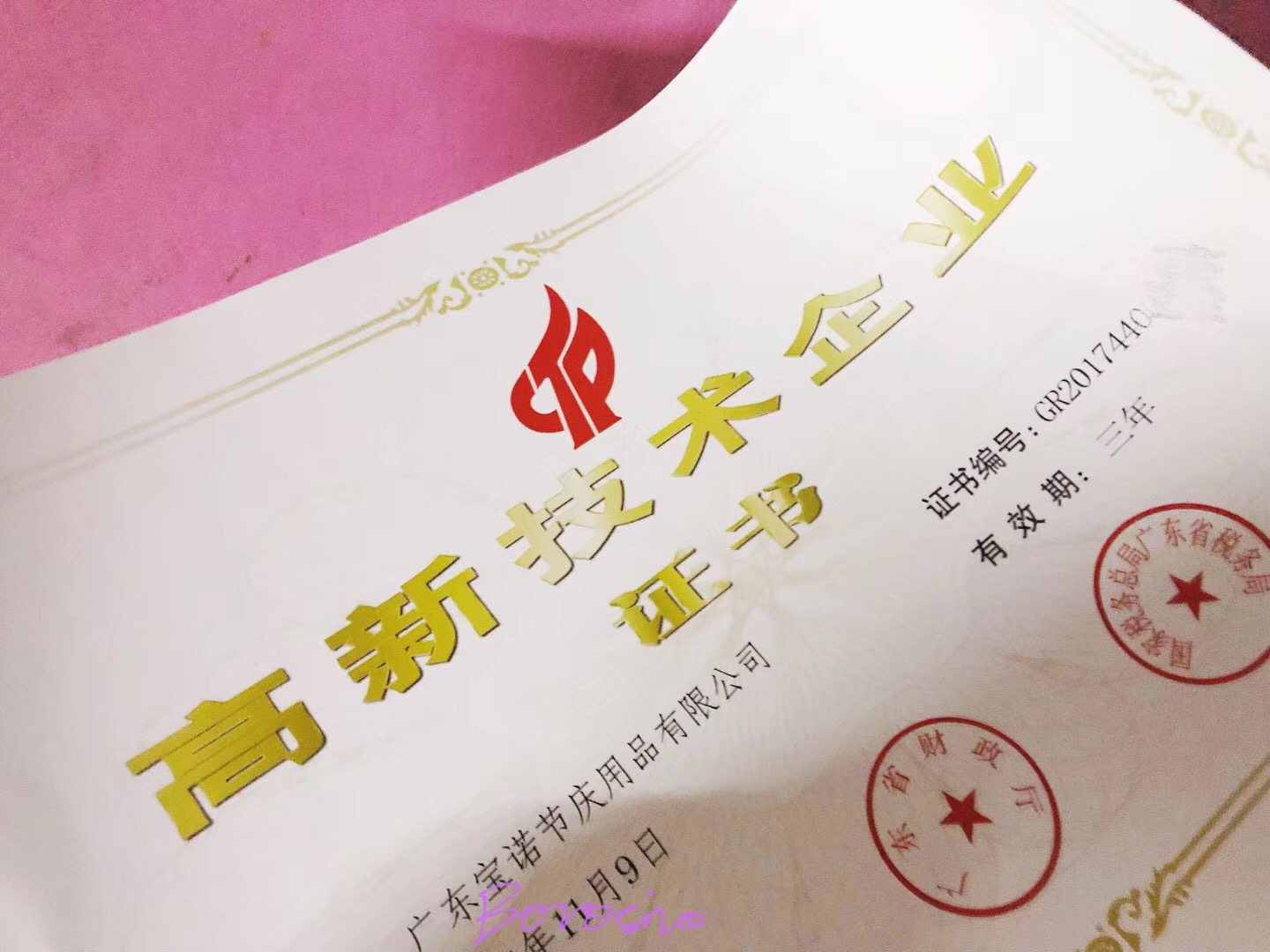 恭喜广东宝诺节庆用品有限公司荣获国家高新技术企业证书